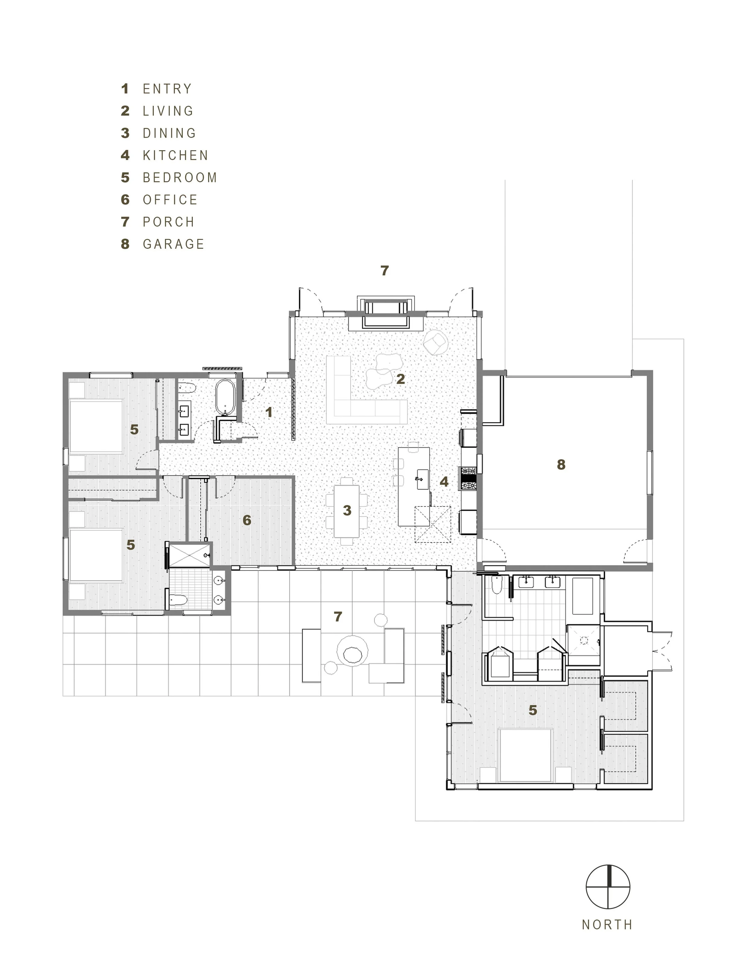 Built in 1955 and located in the Wellshire neighborhood of Denver, Josephine Residence stands out as one of the community's original model homes, thereby giving it historical significance among long-time neighbors and local midcentury enthusiasts alike. Despite some of the project’s existing challenges, such as a northerly orientation, a heavily divided floorplan, and outdated 1980’s refinished interiors – its solid foundation and structure, along with a few subtle modernist design elements, would influence the intervention of the home’s interior and exterior.